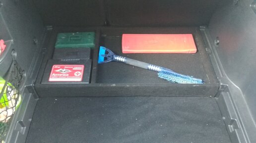 Всем доброго времени суток. После изготовления фальшпола в багажник остались обрезки фанеры, и через какое то время я сделал органайзер под разное барахло. Примерил примерно где что будет лежать с заделом на будущее. Органайзер сделал немного больше заводских Дно выпил из фанеры 6мм. Доступ к запаске в собранном...
