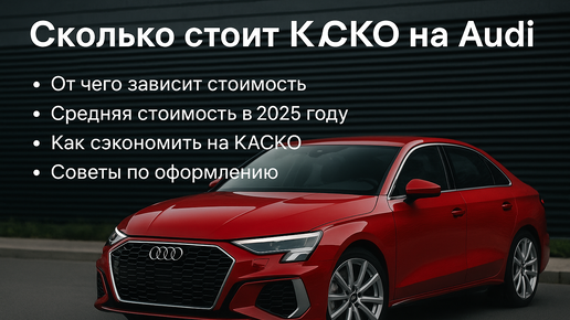 КАСКО на Audi — это добровольная страховка, которая покрывает ущерб от ДТП, угона, стихийных бедствий, падения предметов и других непредвиденных ситуаций. Стоимость полиса для автомобилей этой марки в 2025 году зависит от десятков факторов, и грамотное понимание этих параметров помогает оптимизировать цену, не снижая уровень защиты. Таким образом, средняя стоимость КАСКО на Audi в 2025 году варьируется в широких пределах — от 80 000 ₽ для компактных моделей до 400 000 ₽ и более для премиальных SUV...