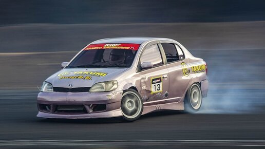 Перед вами автомобиль под названием Toyota Platz, это тот же Vitz, только седан. С завода он идёт переднеприводным или полноприводным, это такой достаточно утилитарный автомобиль без претензий на спорт, но почему-то владельцу этого седана, захотелось на нём дрифтовать. Как он сам говорит, ему захотелось дрифтить на необычном автомобиле...
