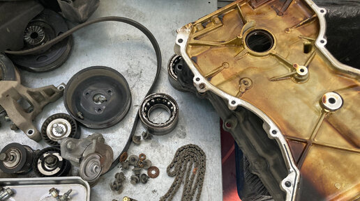 Автомобиль приехал на сто с посторонним шумом в подкапотном пространстве. При дефектовке выявлено что перескочила цепь на 3 зуба, повредила весь механизм грм и шестерню распредвала. Производится замена полного комплекта механизма грм...