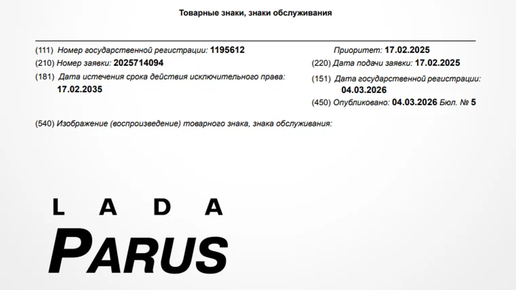 Регистрация Lada Parus: что известно о новом товарном знаке АвтоВАЗа