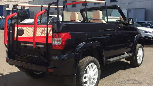 Автопроизводитель УАЗ разработал кабриолет на основе флагманского внедорожника Патриот. Первая модель была создана для правительства Намибии по спецпроекту, ее основным назначением был выезд на торжественные события. Судя по снимкам, за передним рядом сидений установлен помост, а дуги безопасности получили мягкую отделку для повышения комфорта. На данный момент, производитель планирует выпуск спецверсии кабриолета Патриот по предварительным заказам правительства разных стран. Новинка располагает салонными поручнями для удобства пассажиров, оригинальным дизайном интерьера и необычным окрасом...