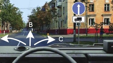 Вопрос: В каких направлениях может проехать грузовой автомобиль с прицепом, массой более 3,5 тонн? 1. Для автомобилей с прицепом запрещено движение в любом направлении. 2. В направлении А. 3. В направлении В. 4. В направлении С. 5. В направлениях А и С. 6. В направлениях А и В. 7. В направлениях В и С. 8. В любом направлении из указанных. Правильный вариант ответа в конце статьи Вспомним знаки указанные на картинке: Комментарий: Табличка 8...