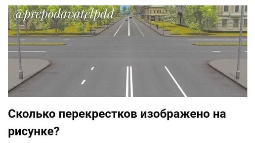 Для ответа на этот, казалось бы сложный, вопрос предлагаю рассмотреть один из вопросов экзаменационных билетов (актуально для всех категорий) Билет 23 вопрос 1. Сколько пересечений проезжих частей имеет этот перекрёсток? - Одно - Два - Четыре Пояснение: В самом вопросе Вам уже дали подсказку, что на рисунке изображен один перекресток. Сколько этот перекресток имеет пересечений проезжих частей? И как вообще считать проезжие части? Давайте разбираться...