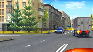 В данной ситуации для того, чтобы продолжить движение в прямом направлении, Вы имеете право: 1. Объехать грузовой автомобиль справа. 2. Продолжить движение только после того, как грузовой автомобиль выполнит поворот налево. 3. Выполнить любое из перечисленных действий. Правильный ответ №3. Для продолжения...