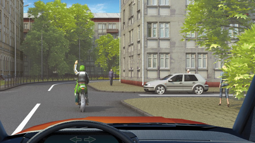 Поднятая вверх рука водителя мотоцикла является сигналом, информирующим Вас о его намерении: