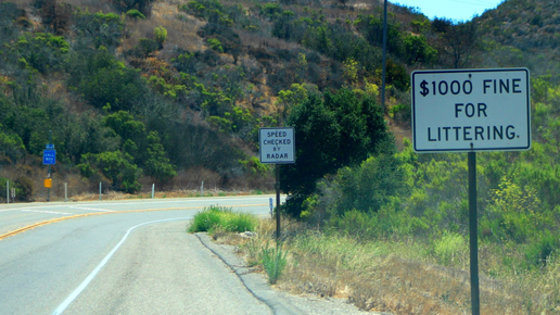 В правилах дорожного движения США есть много неожиданных для нас пунктов. Вот некоторые из них. Мусор на дороге Мусорить на дороге нельзя. За этим следит дорожная полиция. Если полицейский увидел, что вы выкинули из окна бумажный стаканчик, окурок, да что угодно — вас накажут. Наказания за это очень строгие — до тысячи долларов за каждый факт нарушения, в зависимости от штата. А выбрасыванием мусора на дорогу (littering) может считаться даже то, на что многие попросту не обращают внимания. Например, ветром из окна выдуло оставленный вами на сидении чек с заправки...