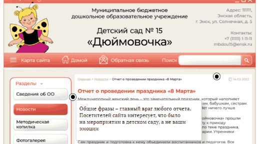 В пандемию большинство мероприятий проходит за закрытыми дверями, поэтому педколлективы стремятся подробно их описать. В результате отчеты переполнены эмоциями, не несут конструктивной информации и появляются на сайте с опозданием. Чтобы отчет был информативным и своевременным, придерживайтесь пяти правил. Они позволят показать, какую работу проводит ваш педколлектив, и не нарушить требования к оформлению сайта. Правило 1. Пишите отчет сразу после мероприятия Отчет о мероприятиях в...