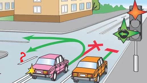 Разворот на светофоре при зелёной левой стрелке и красном основном сигнале. Можно ли?