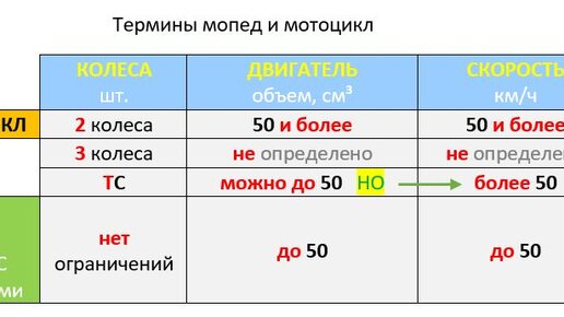 2.27. мопед — механическое транспортное средство, приводимое в движение двигателем с рабочим объемом до 50 куб. сантиметров и имеющее максимальную конструктивную скорость движения, определенную его технической характеристикой, не более 50 км/ч. К мопедам приравниваются велосипеды с подвесным двигателем, мокики и другие механические транспортные средства с аналогичными характеристиками; 2.28. мотоцикл — двухколесное механическое транспортное средство с боковым прицепом или без него, приводимое в движение двигателем с рабочим объемом 50 куб...