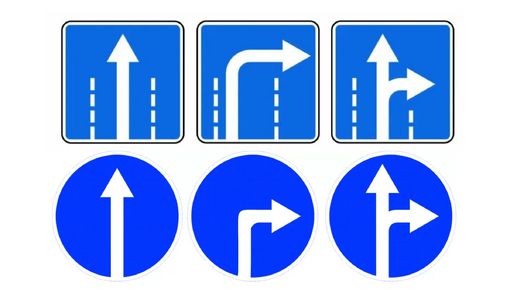 На дороге часто встречаются похожие синие знаки со стрелками: один круглый, другой квадратный. Многие задаются вопросом: они ведь оба указывают направление, так в чем их разница? Объясняем, в чём их суть. Это предписывающий знак, круглый с белой стрелкой на синем фоне. Его смысл: все водители должны двигаться только в указанном направлении — в данном случае направо. Важно: этот знак касается всех полос движения, а не только той, где вы едете. — Устанавливается он непосредственно перед пересечением проезжих частей...