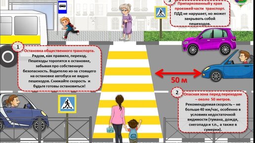 Пешеходный переход – место опасное!!! На практике часто бывает так, что человек теряет бдительность на переходе, считая это место абсолютно безопасным. Несмотря на то, что ПДД не требуют от водителя специального снижения скорости или остановки перед пешеходным переходом, если на нем нет людей, сбросить газ при подъезде к переходу все равно стоит. Будьте внимательны на остановках Остановка общественного транспорта - это зона повышенной опасности, где часто происходят аварии с участием пешеходов...