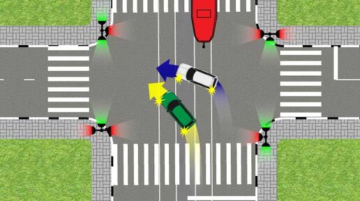 Ситуация на дороге — поворот с трамвайных путей Водитель белого автомобиля собирается повернуть налево, останавливается на запрещающий сигнал светофора. Так как правила требуют совершать поворот налево с трамвайных путей он заблаговременно перестроился на них: С практикой введения пешеходных фаз на перекрестах ожидание разрешающего сигнала может занять значительное время и не удивительно, что за это время подъехал трамвай. При включении разрешающего сигнала, водитель белого автомобиля перестроился...