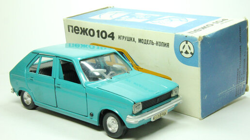 Приобретение. У многих из нас в детстве, по крайней мере у ленинградцев, была такая моделька. Их производил электромеханический завод "Спутник", что на Волковском проспекте дом 6. Продукцию завода, например популярные электрофоны (проигрыватели пластинок) "Юность", легко узнать по характерному логотипу со стилизованной буквой "Л". Моделька Peugeot 104 считалась не очень редкой, но очень классной. Ещё бы: крупный масштаб - 1/25, открываются все четыре двери и капот, под капотом - подробно смоделированное...