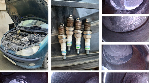 Автомобиль : PEUGEOT 206 Год выпуска : 2001 Маркировка двигателя : TU3A Объём двигателя : 1.4 (75 л.с.) Тип топлива : бензин Блок двигателя : алюминиевый с чугунными гильзами Заявленный пробег : 280000км Проверку заказал собственник авто Осмотр показал: - нагар на поршнях, более, чем положено (признаки расхода масла); - естественный износ всех цилиндров, хон практически не просматривается; - края поршней жирные, масло поступает в камеру сгорания; - свечи в нагаре, требуют замены; - клапана в нагаре, износ маслосъемных колпачков; - двигатель работает без посторонних шумов...