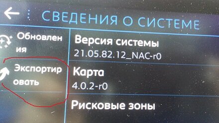 Экспорт настроек Connect Nav При переходе на экран «сведения о системе» слева можно увидеть активную кнопку «экспортировать». Перед нажатием на эту кнопку нужно в USB вставить флешку, отформатированную в формате FAT32...