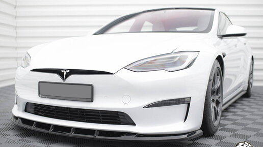 Губа (накладка) переднего бампера на Теслу Модел С Плейд (Tesla Model S Plaid) 2021 модельного года Вариант 1