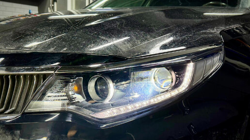 Всех приветствую! Сегодня у нас в студии Kia Optima 4. Штатно на автомобиле установлены галогеновые фары, света которых откровенно не хватает. Наша задача - максимально освежить фары: заменить штатные линзы ближнего света на современные светодиодные, заменить лампы дальнего света на более производительные Led и привести стекла в порядок. Состояние фар до начала работ: Далее все стандартно. Демонтируем бампер и фары. Снимаем с них все навесное и отправляем в печь. Герметик в данном случае термоплавкий и, после нагревания, стекла легко отделяются от корпусов...