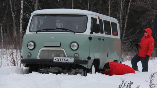 УАЗ Буханка был взят нами еще и с меркантильной целью - напилить дров. Но сиденья в салоне напрочь отказались откручиваться, не позволив замусоривать вагончик. Пила пригодилась для борьбы с бездорожьем и баловства. Но до опилок в УАЗ Буханка мы все-таки докопались. Если кому интересно, как это было, посмотрите внимательно видео внизу УАЗ Буханка недавно отметил свое 60-летие, но на покой не собирается. По случаю круглой даты была выпущена спецсерия - юбилейной версия пассажирского УАЗ-220695, которую мы и загнали в сугроб...