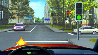 Чем характерен регулируемый перекрёсток. Здесь очерёдность движения устанавливается сигналами светофора (или регулировщика). Но сначала давайте о светофоре. О регулировщике потом. Что может быть проще и понятнее сигналов светофора. Водители на пересекаемой дороге послушно стоят у стоп-линий (им включен красный). Мы и встречный можем двигаться, нам обоим горит зелёный сигнал. То есть у нас с водителем встречного автомобиля – равное право на проезд! Ну, так здесь для нас ничего нового. Всё так же,...