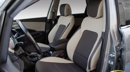 Сшили и установили комплект перетяжки сидений для Hyundai Santa Fe.