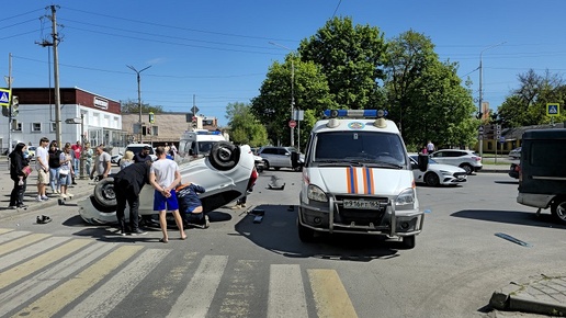 В центре Новочеркасска после столкновения перевернулся Hyundai Solaris