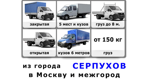 Осуществляем грузоперевозки на газели по Серпухову, а также в Москву, по области и межгород по России по заранее фиксированной цене, без оплаты времени в дороге (независимо от пробок) При оплате без времени в дороге в цену включены 2 часа на погрузку и 1 час на разгрузку - ожидание газели - - Наши преимущества: + Честная цена - Работаем по заранее объявленным ценам, без придумывания фантастических историй на месте для увеличения окончательной стоимости перевозки + Свой автопарк - Все перевозки осуществляем...