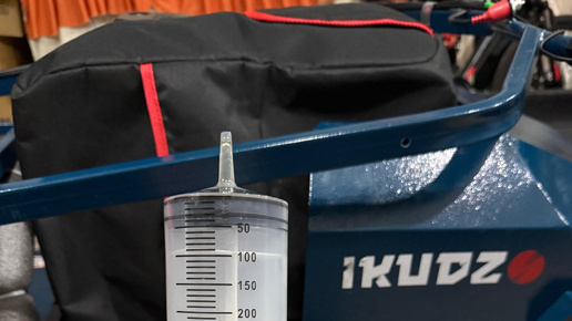 Ну вот и дошли руки до первого обслуживания моего мотобуксировщика. По документам рекомендуют менять масло через 20–30 мото-часов, но я решил не тянуть. За лето я его не раз заводил, он поработал на холостых, да и первые покатушки — около трёх часов — тоже дали свою нагрузку. Масло на щупе почернело, а под нагрузкой появился лёгкий запах — значит, пора менять. Заказал себе шприц на 550 миллилитров, потому что сливной болт там «удачно» расположен — буквально в сантиметре от рамы. Подставить нормальную ёмкость почти нереально, поэтому откачка показалась самым логичным вариантом...