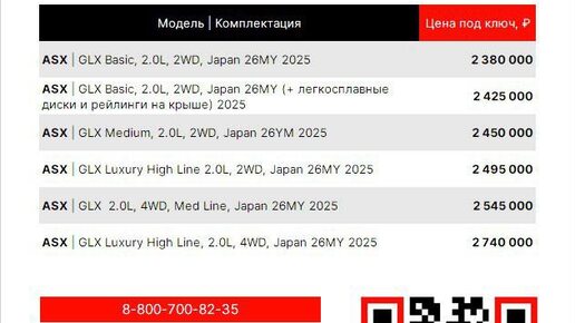 ПРАЙС | MITSUBISHI ASX (2025