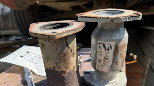 Вообще, когда был удалён катализатор и установлен на его место пламегаситель, звон уже был тогда, но не такой сильный. Видимо от времени, а это уже 6 лет, металл деформировался и стал тоньше. Ну что ж, надо менять, чо делать то?! 🤷♂️ Благо что тут нам особо искать не пришлось😎