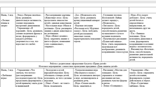 Работа в летний период строится на знакомых играх и упражнениях. В это время в 1 младшей группе продолжается развитие КГН, коммуникативных способностей и умения выполнять просьбу взрослых. Под руководством взрослого малыши учатся играть вместе, спокойно выражать свои просьбы, ориентироваться в помещении группы и на участке. План на лето в 1 младшей группе включает в себя игровые ситуации, пальчиковые и подвижные игры, участвуя в которых дети расширяют знания о природе и социальном окружении. План...