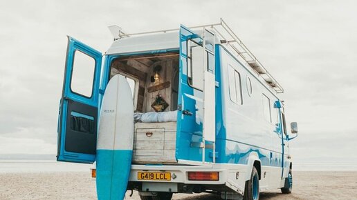 Старый фургон превратился в богемную пляжную хижину на солнечных батареях