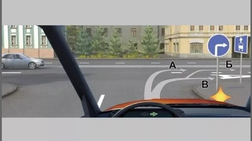 По какой траектории разрешается продолжить движение? Дайте ответ на этот билет ПДД, иначе автошколе за вас будет стыдно — рискнете?