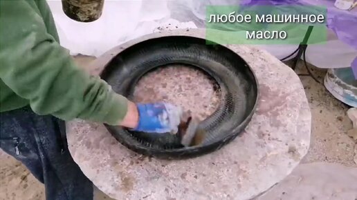 Разрезаем шину напополам с помощью болгарки или острым ножом с жёстким лезвием. Смазываем любым маслом, можно отработанным автомобильным. Наполняем нашу форму раствором 1 часть цемент М 500, песок 2 части Обязательно армируем, проволокой 3 или 6мм, можно толще если удастся её согнуть полукругом. По сырому раствор делаем примерные наброски, если не понравится можно исправить и нарисовать заново. Первый вариант под камень, второй под доску, можно сделать любую фактуру которая вам понравится, или которая подойдёт под ваш дизайн...