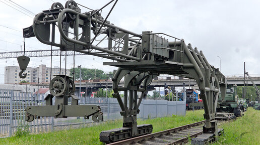 Путеукладчик ПБ-3М может укладывать или разбирать пути узкой или широкой колеи со скоростью 2 км в смену.