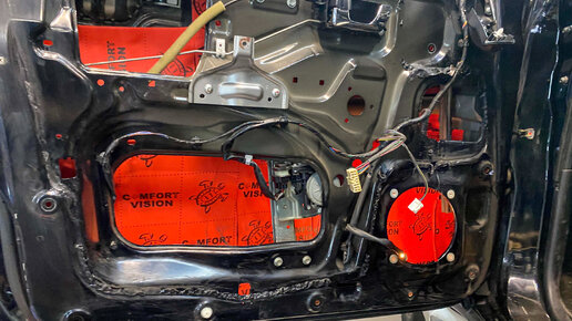 Установка магнитолы #Parafar для Mitsubishi Pajero 4 на Android 11.0 #PF458UHD, шумоизоляция дверей, камеры перед/зад, парктроники 8 датчико