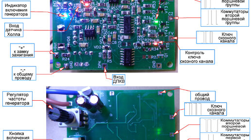 Предназначен для работы с внешними устройствами искрообразования (коммутатор, блок зажигания) с последовательно-повторным распределением задающей импульсной последовательности между ними и стартовой синхронизацией от датчика положения коленчатого вала (ДПКВ) или других датчиков, обозначающих ВМТ или НМТ. ЭТ (принципиальная схема на рис.1) имеет два входа. Вход "DH" предназначен для подключения датчика Холла или контакта прерывателя. Вход "IND" предназначен для работы с индуктивным датчиком. Для...