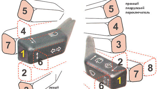 Чтобы максимально эффективно управлять автомобилем, помимо всего прочего, нужно знать положения рычагов его подрулевых переключателей. На подрулевые переключатели автомобиля ВАЗ 2110 возложены функции управления указателями поворота, дальним светом фар, омывателями и очистителями переднего и заднего стекол. Рассмотрим на схеме что и как работает и включается при различных положениях левого и правого рычагов. Оригинал этой статьи смотри на нашем сайте twokarburators.ru - "Положения рычагов подрулевых переключателей ВАЗ 2110"...