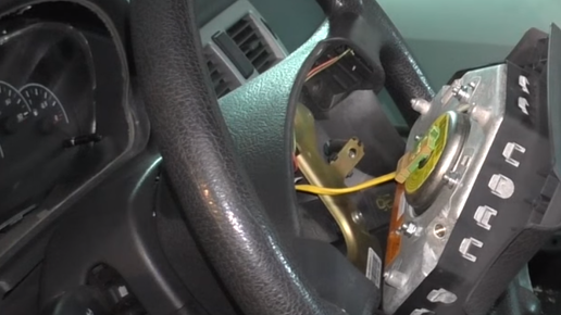 Первым делом отцепляем плюсовую клемму с аккумулятора. Выжидаем минут 10-15, для того чтоб разрядился конденсатор активатора подушки безопасности. Нам понадобится шестигранный ключ на пять. Откручиваем шестигранным ключом два болта по бокам рулевого колеса. Болты не выпадут, а останутся в руле. Открутив болты потихоньку – не резко, извлекаем подушку, чтоб не повредить...