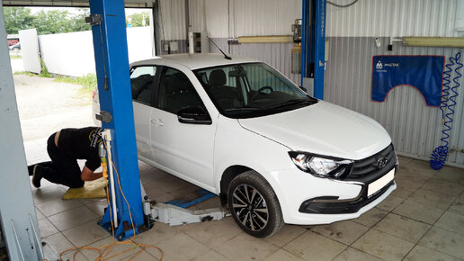 Смотрим днище у Лады Гранты, визуально оцениваем качество комплектующих
