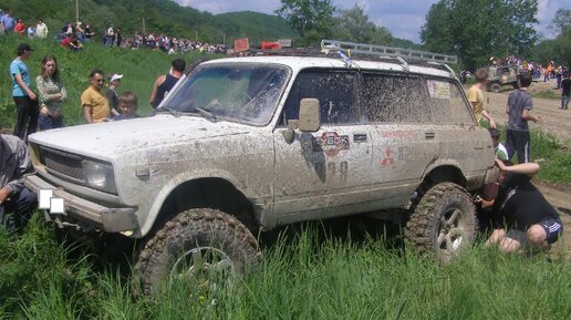 На соревнованиях по джип-триалу мне совершенно случайно довелось увидеть полноприводную «четвёрку». То есть самый обычный универсал ВАЗ-2104, но в комплектации «биг фут». Машина приехала на из одного города в другой своим ходом, без всякой помощи вроде эвакуатора или прицепа...