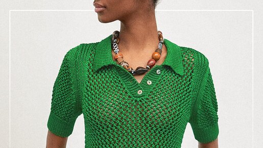 Продолжаю летнюю тематику и на очереди модель, которая понравилась многим. Это очень простое в исполнении поло, хотя и выглядит слегка сложноватым. В сегодняшней статье я расскажу, как выбрать пряжу для этой модели, какой будет выкройка, как добиться эффекта аккуратных швов и немного о воротнике. А ещё покажу модели от других брендов. Люкс против масс-маркета. Ярко-зелёное и лазурно-синее поло от Зара Для начала давайте рассмотрим модель, которая так вам понравилась. В статье от 10 мая я публиковала несколько вариантов поло и изделие под брендом Зара было одним из них...
