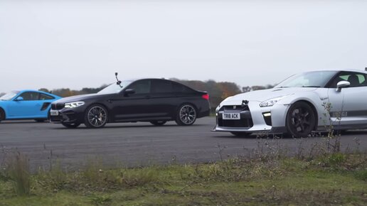 Nissan GT-R против Porsche 911 Turbo и BMW M5 Competition: дрэг-гонка