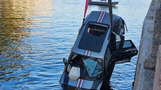 Сегодня утром Porsche Cayenne снес ограждение и нырнул в Фонтанку