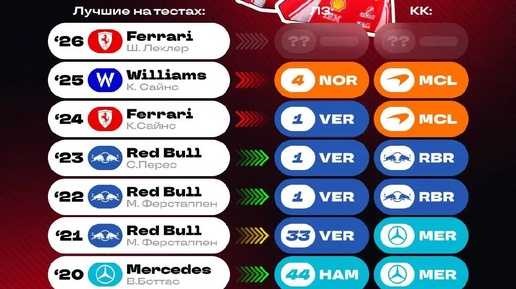 🔴 За последние десять лет Ferrari пять раз становились лучшими по итогам предсезонных тестов — чаще любой другой команды
