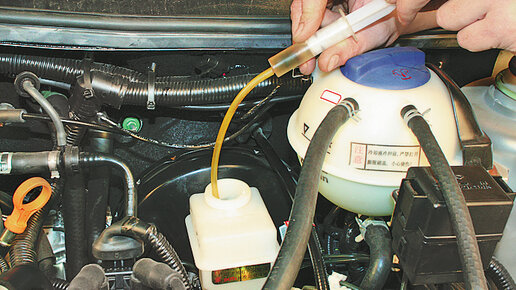 Такие вещи обязательно надо делать при замене тормозных колодок. Это касается, само собой, только дисковых тормозов. Откачка тормозухи Если в процессе износа колодок в бачок доливалась тормозная жидкость, то перед заменой колодок обязательно надо откачать шприцом 50 - 100 грамм. Это нужно, чтобы не выделать в тормозуху все подкапотное пространство, потому она потом очень плохо оттирается, затекает во все щели. В общем, все мы знаем, какая это противная зараза. Подтеки томозной жидкости легко могут сожрать краску до металла...