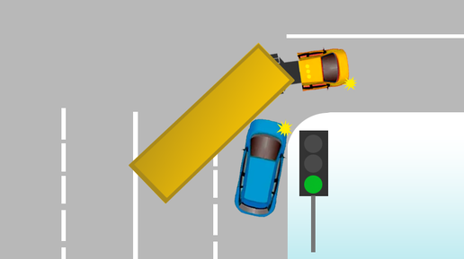 Оба поворачивают направо. Кто виноват в дтп между фурой и легковушкой? Разбор ПДД задачки