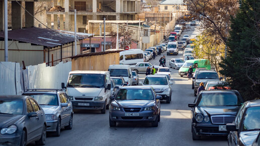 В Баку водитель Prius, желая объехать пробку, грубо нарушил ПДД