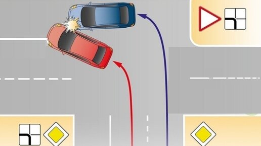 Доброго времени суток, уважаемые читатели! В России организация дорожного движения в последние время улучшается, но по прежнему остались небольшие недостатки, порой данные недостатки вводят в заблуждения водителей и приводит к ДТП. На нашем рисунке изображена достаточно частая ситуация имеющая место быть в реальности. Особенно в часы пик когда движение интенсивное все хотят повернуть, проехать прямо не стой полосы с которой это регламентирует ПДД. На рисунке мы видим, что два автомобиля поворачивают налево по главной дороге, синий автомобиль поворачивает с первой полосы, красный со второй...