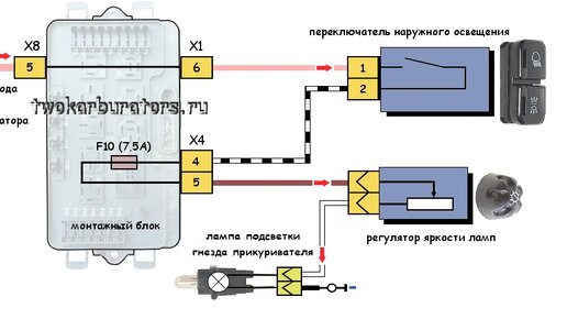 Схема подключения лампы подсветки прикуривателя ВАЗ 2114